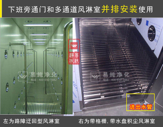 4、風淋室為單向通道進,旁邊設置下班通道門;